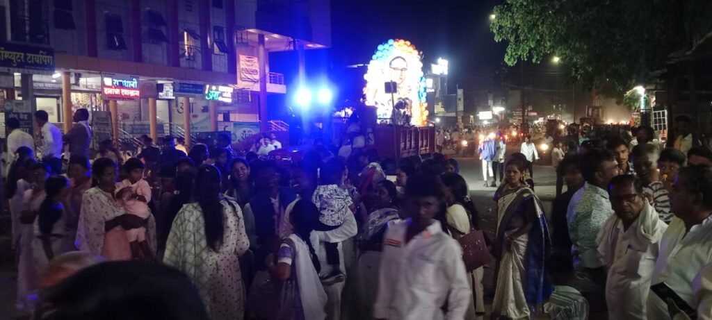 सुमेधबोधी विहार (बोरबन) मार्ग येथून निघालेली मिरवणूक कृष्णमंदिर, माहेश्वरी चौक, छत्रपती शिवाजी महाराज चौक मार्गे डॉ. बाबासाहेब आंबेडकर पुतळा आणि तहसील कार्यालयापर्यंत पोहोचली. बँजो पथकाच्या तालावर आणि भीमगीतांच्या गजरात ही रॅली काढण्यात आली.तर शहराचा मध्यभाग असलेल्या आंबेडकर वार्डातूनही भव्य मिरवणुकीला सुरुवात झाली. ही रॅली नाग चौक, बस स्टॅन्ड आणि छत्रपती शिवाजी महाराज चौकातून मार्गक्रमण करत डॉ. बाबासाहेब आंबेडकर यांच्या पुतळ्याजवळ पोहोचली.